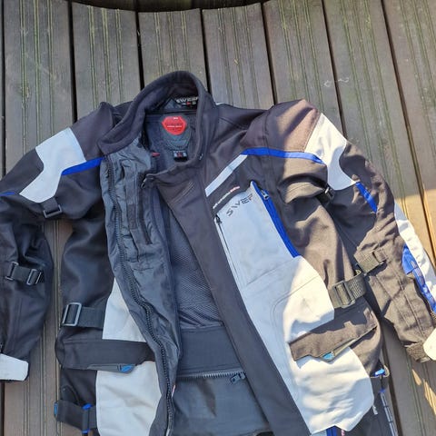 Timeless Street ajopuku, johon kuuluu takki ja housut. Takissa ja housuissa vetoketjulla irrotettava vuori.