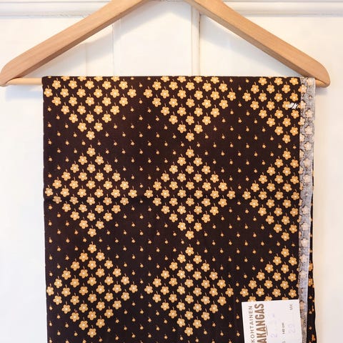 Käyttämätön paksumpi värikäs kangas, näyttää puuvillaa/pellavaa sekoitukselta, 70-luku. Kankaassa ilmeisesti värivirhe - 3 punaistaa viivaa. Nouto/postitus.