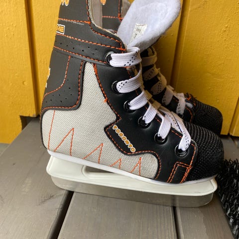 Nike Bauer lasten jääkiekkoluistimet, koko EUR 27. Väriltään mustat valkoisin yksityiskohdin. Teräosa TUUK Stainless -terillä. Nauhakiinnitys.