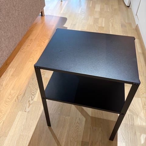 Metallinen tarjoilu/sivuvaunu hyllykkö. Rei’itetty ylätaso, muut tasot metallia. Kumipyörät joista ei ole jälkiä jäänyt. Kätevä monenlaiseen käyttöön, esim. kouluvälineille. Väriltään valkoinen. Mitat: syvyys 30cm, leveys 50,5cm, korkeus 83,5cm