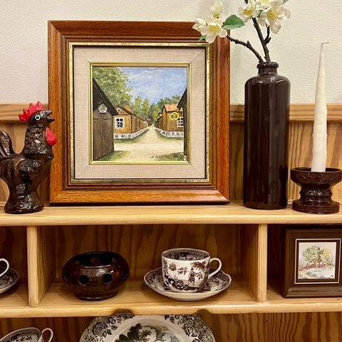 Vintage, lautashylly / astiahylly koriste, keräily, maalaisromsnttinen