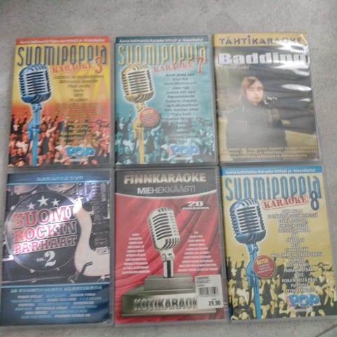Myydään yhtenä eränä sekalainen kokoelma karaoke DVD-levyjä. Levyillä on pääsääntöisesti suomenkielisiä kappaleita, mutta joukkoon mahtuu muutama englanninkielinenkin levy.