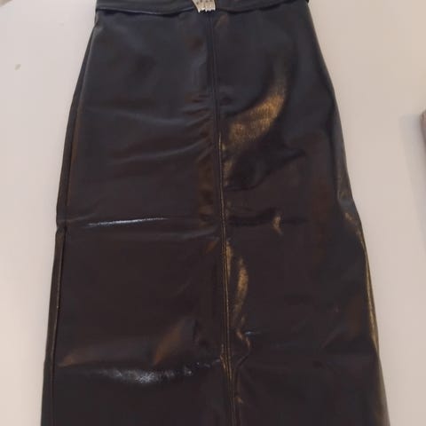 Käyttämätön musta hame. Edessä laskoksia. Kuva vääristää väriä.