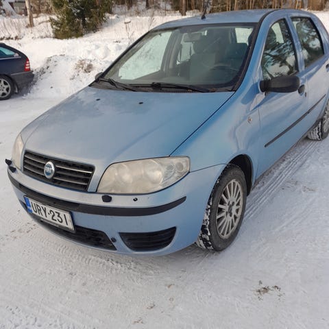 Tommonen fiat punto purussa ilmajoella. Alustan osat ainakin ehjiä ja kaikki jarrut ja iskarit jne. Jarrut eivät ole jumissa koska tällä ajettiin viimeksi viikko sitten ja toimi hyvin ne. Moottorista palanut kansipahvi ja nesteet ovat sekaisin