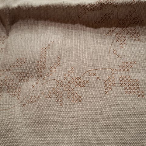 Kirjontatyö, iso pöytäliina 130x240. Uusi.