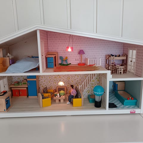 Lundby nukkeperhe ja nukkekotiin sopiva keinuhevonen. Siistikuntoisia ehjiä leikeissä olleita hahmoja, vauvan paidan selän tarra on irronnut, mutta on mahdollista korjata ompelemalla.