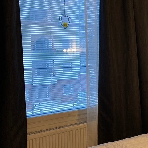 Läpikuultavat, kevyet, päästävät valoa läpi ja luovat tilantuntua. Väri luonnonvalkea/beige. Kiva pystyraitainen tekstuuri.