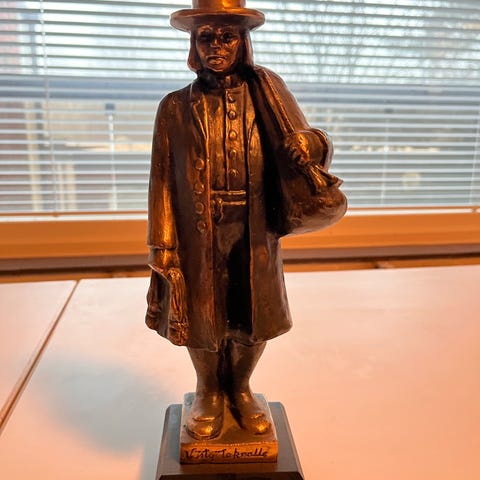 Myydään hyväkuntoinen, Art Nouveau henkinen pronssiveistos.