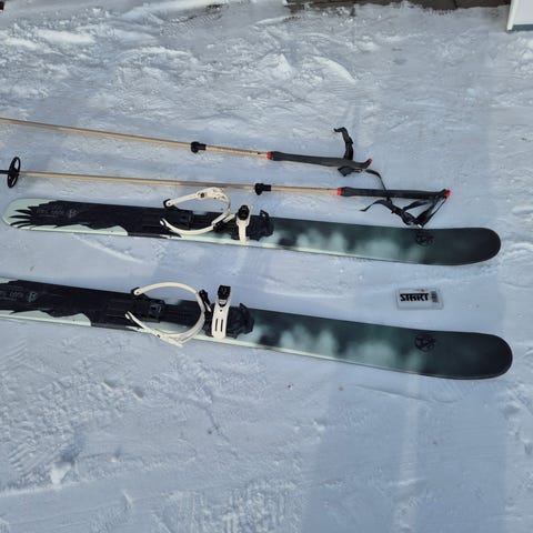 Pusun liukulumikengät karvapohjalla ja OAC-siteellä, normaaliin kenkään käyvä. Sukset koiraystävällinen kantiton malli, kansi kaunista koivuviilua. Kunto erinomainen. Nouto Sipoosta, voin myös postittaa, tällöin maksu ennakkoon.