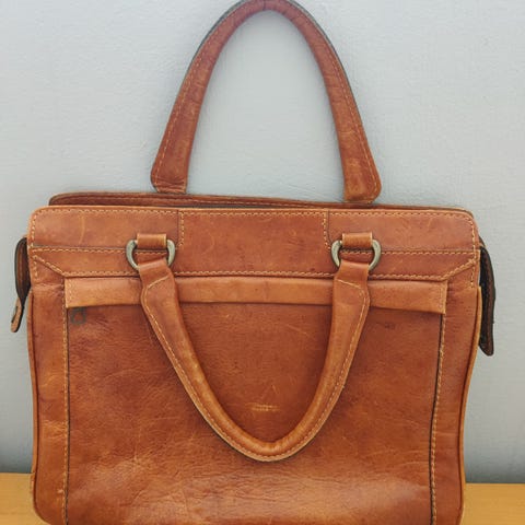 Ruskea nahkalaukku, koko 21x12cm, säädettävä olkahihna. Haku tai kulkeutuu mahd Oulun alueella. Käteismaksu. Kissatalous.