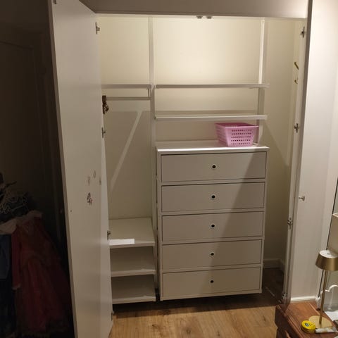 Lankakorit 60 cm leveään kaappiin, jossa on jo valmiina reiät. Ei itse porattu! Kiskon koukku tulee reikään.