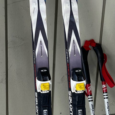Paljon käytetyt mutta täysin ehjät ja kestävät sukset. Näillä on pikkuhiihtäjän hyvä hiihdellä. Sauvat tulee mukaan 82cm. Side nnn.