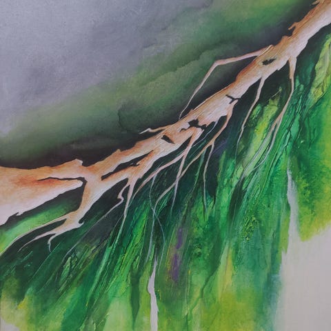 Abstrakti taulu, jossa vaaleita, kultaisia ja mustia sävyjä geometrisessa sommitelmassa. Sopii sisustuselementiksi esimerkiksi olohuoneeseen tai makuuhuoneeseen. Taulu on pystysuuntainen ja se on toteutettu kankaalle tai vastaavalle alustalle. Tarkat mitat ja materiaalit eivät käy ilmi kuvista. Koko 100x120cm. Vain nouto.