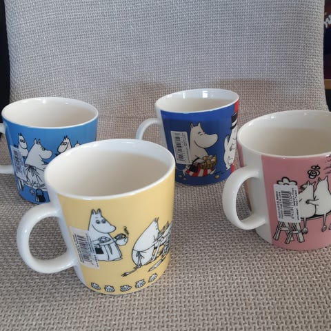Arabia Muumi uusia mukeja, joissa lappu yhä kiinni. 12/kpl tai 40€ kaikki yhdessä.