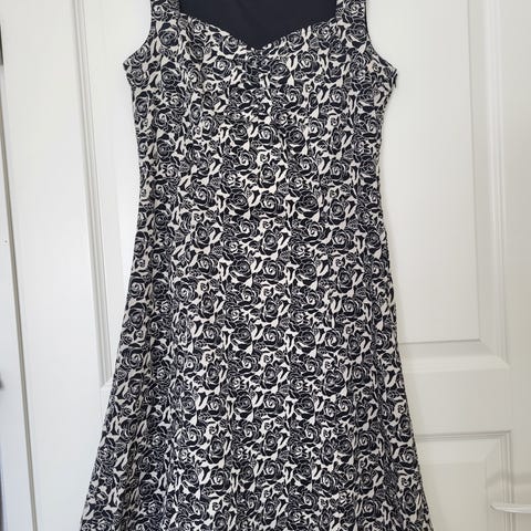 Zolla naisten juhla- tai cocktailmekko, lapussa koko XL, mutta vastaa kokoa M. Mekko on kimaltava musta, vyö solmitaan vyötärölle.