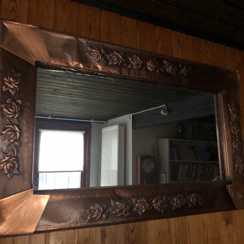Antiikkinen rokokotyylinen, valtavan kokoinen peili, n. 2,3 metriä korkea.