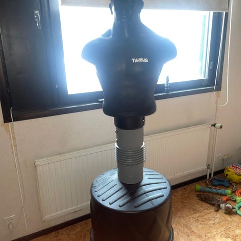 Boxing Bar nyrkkeilypallo jalustalla. Vapaasti seisova malli, jossa on täytettävä pyöreä jalusta ja korkeussäädettävä metallinen varsi. Yläosassa on jousimekanismi, joka mahdollistaa pallon joustavan liikkeen. Musta iskualue soveltuu lyönti- ja reaktiotreeneihin kotikäyttöön tai harjoittelutiloihin.