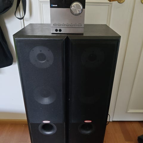 Siemens Klangmeister RD150 radio vahvistimella. Laitteessa on useita aaltoalueita (mm. FM/UKW, MW, LW, SW) ja etupaneelissa säätimet äänenvoimakkuudelle, balanssille, bassoille ja diskanteille. Etupaneelissa on myös kanavavalitsimet ja toimintonäppäimet, kuten AFC, mono/stereo ja kaiutinvalinnat. Mukana erilliset kaiuttimet, joissa kaksitie-rakenne (diskantti- ja bassoelementti). Sopii radion kuunteluun ja äänentoistoon kotikäytössä. Kaiuttimet kuuluu samaan hintaan, nouto tai lähetys onnistuu.