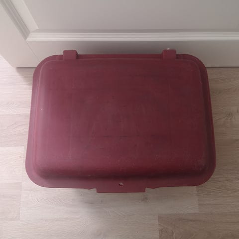 Laukkua on käytetty, pitkä olkahihna kadonnut, mutta tähän voi kiinnittää halutessaan minkä vain muun pidemmän hihnan kiinnikkeisiin.