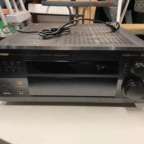 Pioneerin spekseiltään ja soundiltaan asiallinen, melko harvinainen pääte 2000-luvun alkupuolelta. Oikein tyylikäs väri, mikälie kulta tai shampanja. Ei välttämättä kokisi oloaan kovin erilaiseksi Luxman-pinossakaan. :) Rapakon takana tätä myytiin Elite-sarjan laitteena. Etupaneelista ja kopasta löytyy jonkun verran neljännesvuosisadan aikana tulleita jälkiä, jotka yritin saada valonheijastuksia vasten näkymään mahdollisimman hyvin kuvissa. Yleisilme kuitenkin siisti, ellei ihan vierestä katso.