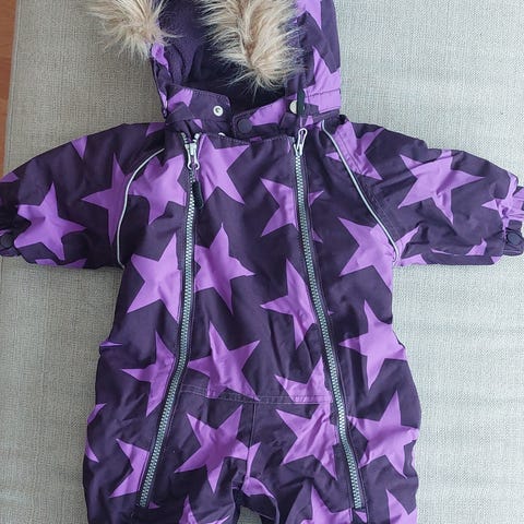 Vähän käytetty kevyempi toppapuku, koko 62. Kaunis kuvioitu puku, molemmin puolin vetoketju, toiselta puolelta avautuu alas asti. Hajuton ja lemmikitön talous.