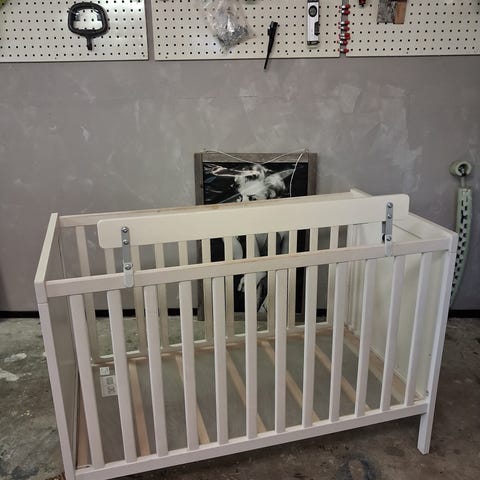 Nykyistä standardikokoista pinnasänkyä pienempi pinnasänky. Lakka paikoin kulunut mutta ei vaikuta käyttöön. Jatkettava malli. Halutessaan saa patjan ja petarin mukaan.