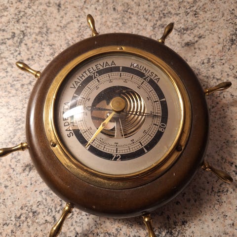 Vanha venäläinen lämpömittari/ jonkinlainen kalenteri pöydälle. Leveys/syvyys 25/15cm.