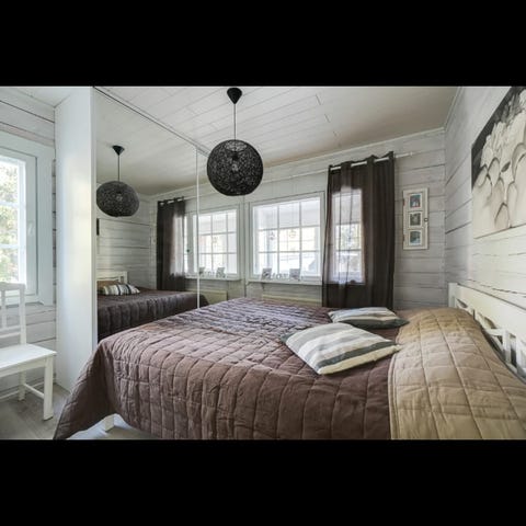 Sängyn päädyssä upotettu valot. Sängyn koko 160×200