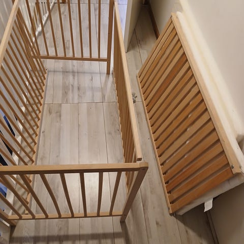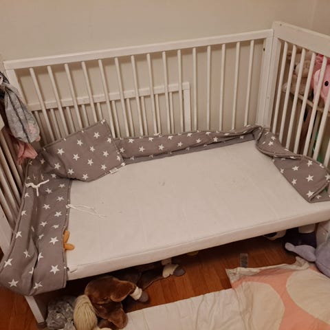 Myydään pinnasänky patjan ja reunapehmikkeen kanssa. Yhdessä jalassa pieni vaurio, joka näkyy kuvassa. Lisäksi sivustoilla jonkin verran kulumaa. Muuten oikein hyvä sänky vauvalle ja taaperoikäiselle.