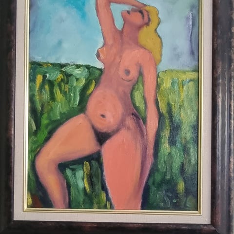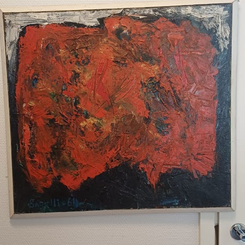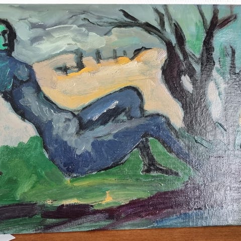 "Merimies" maalattu pahville (?), 1993, ei jälkiä, ei kehyksiä. Koko 18 x 28 cm. Työn takapuolella ei merkkauksia.