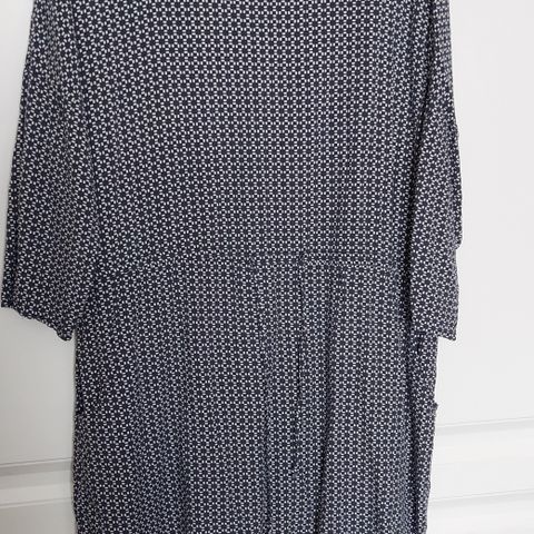 Myydään siisti naisten pitkähihainen tunika/oversize-paita. Värinä valkoinen sinisellä kuviolla, pehmeä ja mukava päällä. Leveä kaula-aukko, 3/4-hihat. Mukava, rento malli. Hyvä arki- tai vapaa-ajan yläosa. Hyvä kunto (ei reikiä/ tahroja)