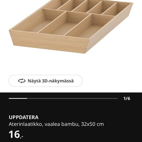 IKEA Uppdatera aterinlaatikko on vaaleasta bambusta valmistettu keittiön laatikkoon sijoitettava säilytysratkaisu aterimille ja pienille keittiövälineille.