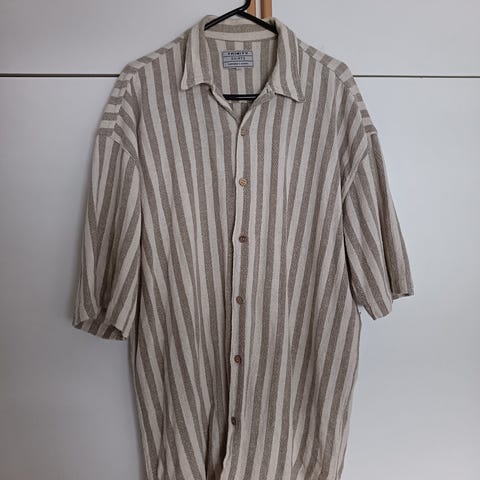Takki ruskeamustalla vaakaraidalla, mustat housut. Yläosassa vetoketju ja taskut. Housut kuminauhavyötäröllä, taskut myös. Ihanan pehmeä froteemateriaali, 80-20 puuvilla-polyester. Loungewearin aatelia.