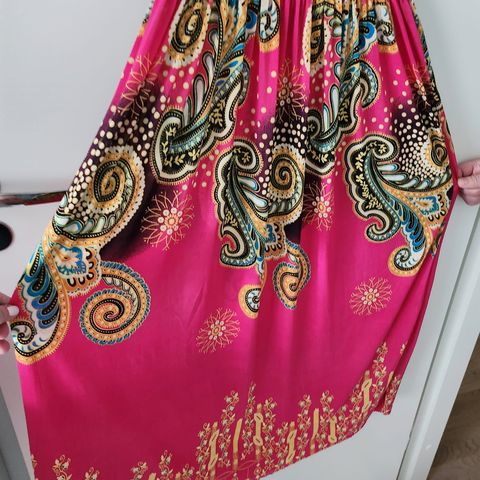 Myydään pinkki maximekko, kunto siisti. Ei näy läpi, yläosa joustavaa, isot hihat.