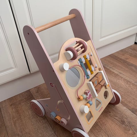 Siisti, ehjä puinen taaperon työntökärry.