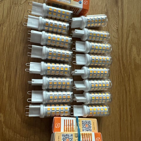 Pihavalaistuksen uusimisesta jääneet GU10 ja E27 ledi polttimoita. Olleet käytössä 5 vuotta joten käyttötunteja jäljellä.
