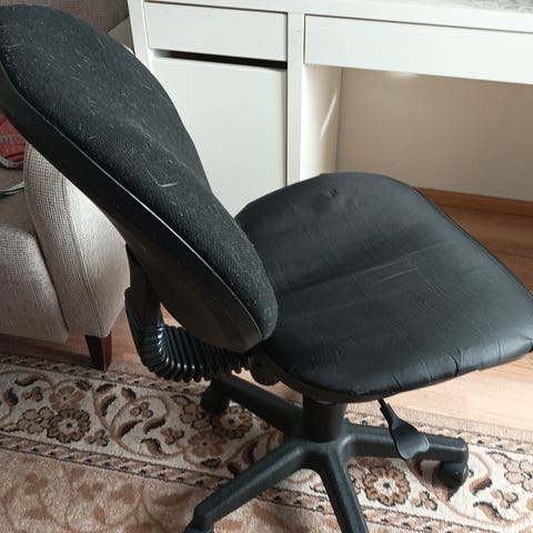 Kuvan mukainen toimistotuoli etsii uutta takamusta tositarkoituksella. Toki tuolilla on paljon kilometrejä takana mutta niitä on paljon myös edessä.
