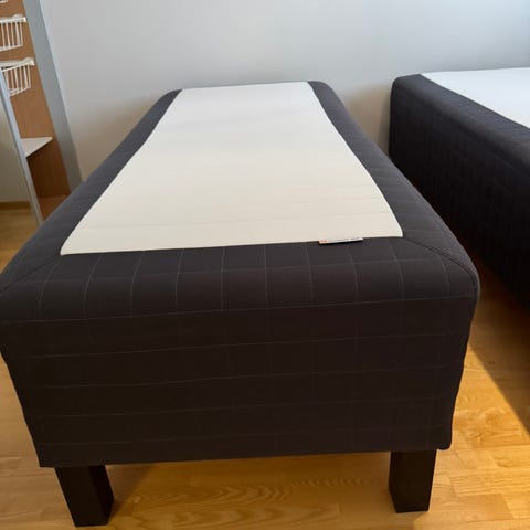 IKEA sänky, jossa kaksi erillistä runkopatjaa muodostavat leveän nukkumapinnan. Runkopatjoissa on tummat reunat ja vaalea päällinen. Sänky seisoo metallijaloilla. Sopii käytettäväksi parivuoteena tai kahtena erillisenä sänkynä riippuen sijoittelusta. Kuvissa näkyy lisäksi erillinen vaalea petauspatja, joka tasoittaa pinnan yhtenäiseksi. Sänky on tarkoitettu aikuisille tai nuorille ja sopii makuuhuoneeseen yleiskäyttöiseksi vuoteeksi.