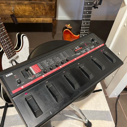 Myydään 'Vintage' Korg A5 kitaran multiefektilaite/pedaalilauta. Itse olen käyttänyt syntikoiden kanssa ja hyvin on toiminut. Laitteessa on useita jalkakytkimiä, joita ei kyllä ole juurikaan poljettu ja säätimiä eri efektien ohjaamiseen, kuten exciter, chorus, delay jne.
