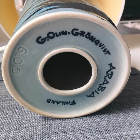 Arabia pöytävalaisin, keramiikkarunko kukkakuviolla.