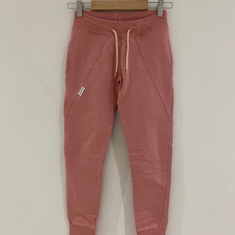 Gugguun collegehousut, jonkin verran tahraa ja tummentumaa on.