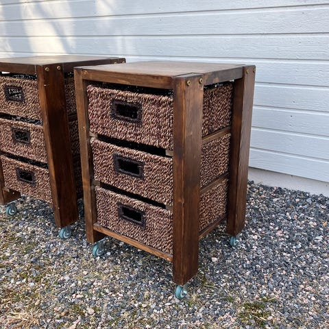 Kuvan upeat retro yöpöydät 2kpl uuteen kotiin. Kunto molemmissa ikäisekseen hyvä. Pari pientä reuna kolhua löytyy. Laatikot toimivat hyvin. Ei hajuja. Pari jälkeä laatikoiden sisällä. Myydään parina.