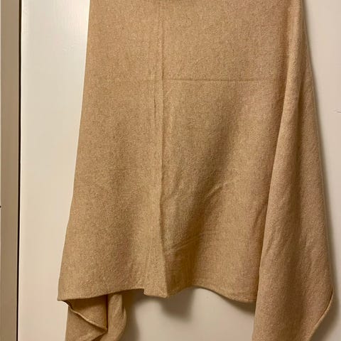 Marja Kurki 100% merinovilla poncho. Todella miellyttävä päällä ja lämmin. Logo mustalla helmassa etupuolella.