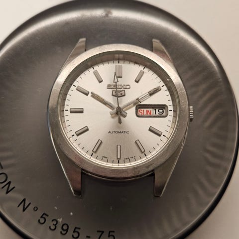 Myyntiin ikäisekseen kohtalainen musta Seiko 5.