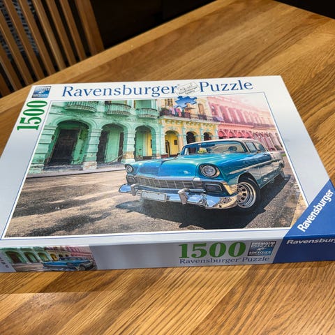 500 palainen Ravensburgerin palapeli. Kaikki palat pitäisi olla tallessa.