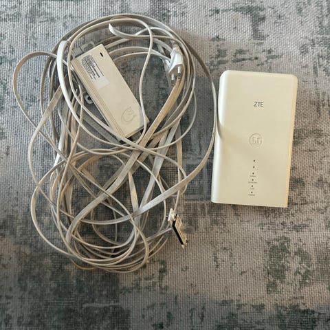 ZTE MC801A 5G reititin valkoisena. Laitteessa on 5G-tuki mobiililaajakaistalle sekä useita liitäntöjä langallista verkkoa varten.