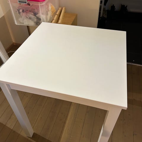 Myydään 160cm x 90cm valkoinen ruokailupöytä. Pieniä naarmuja pinnassa, muuten kuin uusi. Vain nouto. Saa tarjota