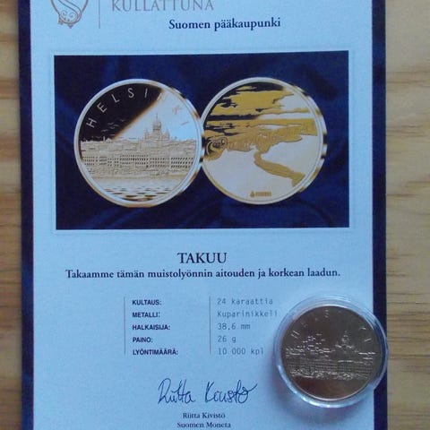 Suomalainen mitali saunatonttu, alkuperäisessä kapselissa