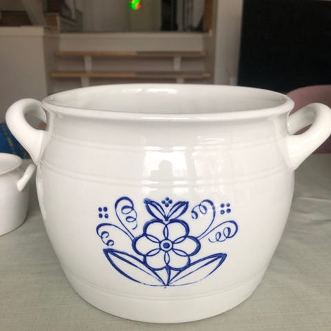 ARABIA iso voipytty, jossa sininen kukkakuvio,