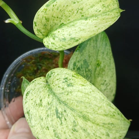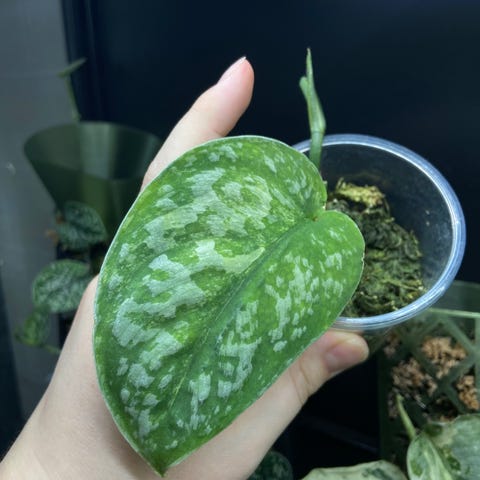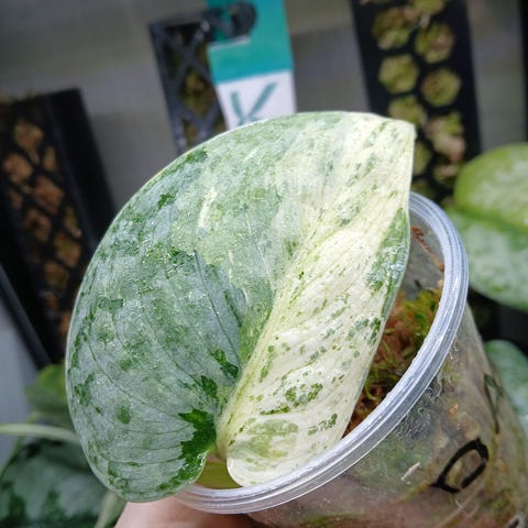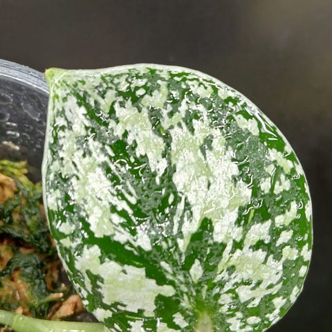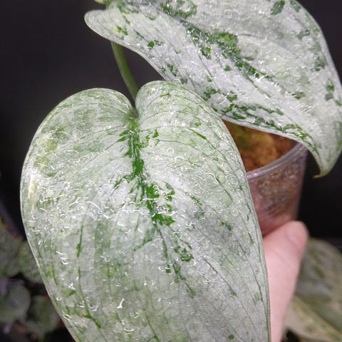 Kaunis hopeaköynnös-laji Silver Dark Cloud. Upea variegata. Leikattu latvapistokas kahdella lehdellä ja lehtirullalla.